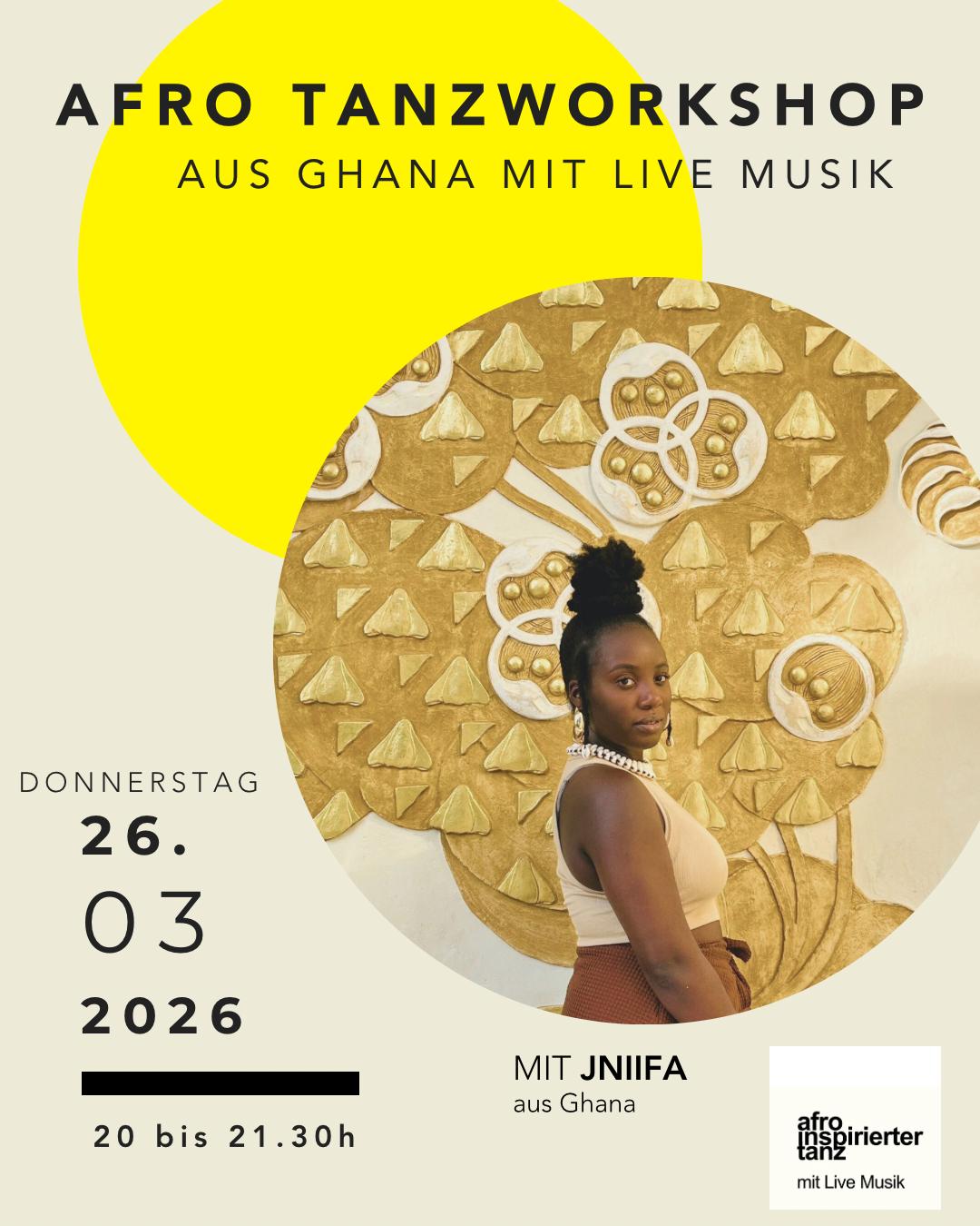 Tanzworkshop mit Jniifa aus Ghana Jniifa wird den beliebten Ghanaischen Tanz Kpatsa unterrichten. Offen für ALLE! Keine Vorkenntnisse nötig! («Poster») Invest: Spendenafro - Pay what you like! Anmeldung bei Angelika Renk angelikarenk@afro-tanz.de / 017823348585 Ort: in der Bessunger Knabenschule Darmstadt, Ludwigshöhstr. 42 |
